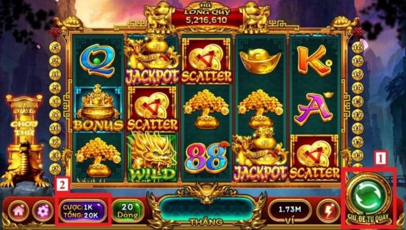 Jackpot được kích hoạt ngẫu nhiên khi bạn quay trúng biểu tượng Long Quy đặc biệt ở các vị trí quy định. Khi nổ hũ, toàn bộ số tiền tích lũy trong quỹ thưởng được trao cho người may mắn, có thể gấp hàng trăm lần số tiền đặt cược.