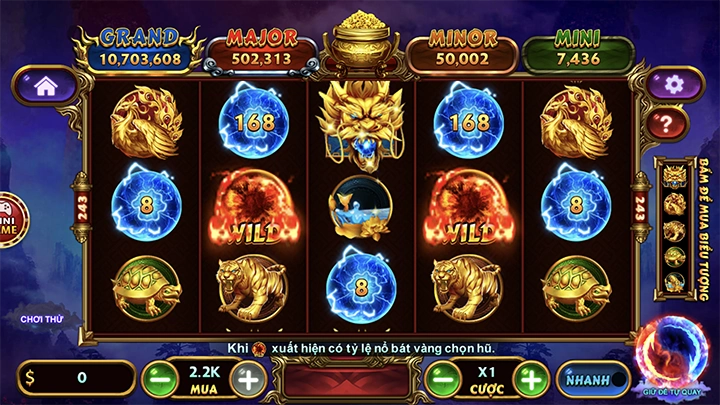 Kho Tàng Ngũ Long thường có các biểu tượng đặc biệt hỗ trợ tăng trải nghiệm quay hũ, khiến mỗi vòng quay trở nên đáng chờ đợi và tạo cảm giác cao trào đúng chất “khai kho báu”.